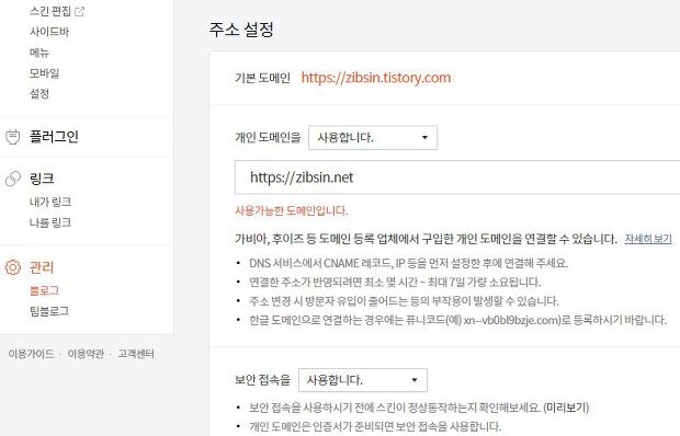 언제부터인지는 모르지만 티스토리에서는 https 접속을 제공해 주고 있었다. 설정은 생각보다 매우 간단하다.