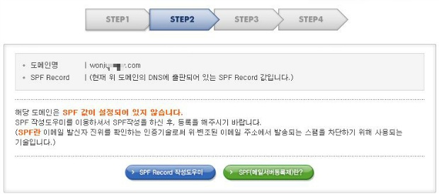 아직은 SPF Record가 적용되지 않았다. 당황하지 말고 위에서 SPF 등록 도우미에서 SPF 레코드 값을 알아낸 것을 일단 잘 기억해 두자. 이 곳에 SPF가 적용 되기까지는 시간이 필요하다.