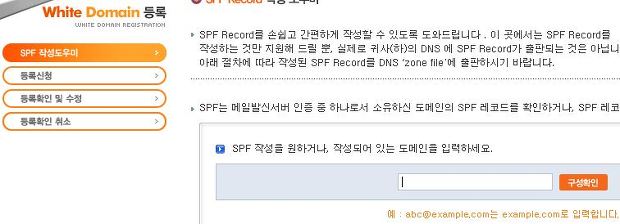 서버호스팅을 받았거나 구축해서 사용하는 사람들은 간혹 한메일로 웹메일이 전송되지 않아 당혹스러울 때가 있다. 메일 서버가 정상 작동하고 있다면 이는 사용하는 서버의 아이피와 도메인이 화이트 도메인으로 등록되지 않아서 나타나는 현상일 수 있다. 우리나라 대부분 포털들이 화이트 도메인 제도를 따르고 있는데 스팸 발송을 방지하기 위해서 신뢰도 있는 서버(도메인)에서만 메일을 받을 수 있게 하기 위함이다. SPF(메일 서버 등록 제도)라고도 하는데 자세한 설명은 https://www.kisarbl.or.kr/ (KISA)에서 제공하고 있다.