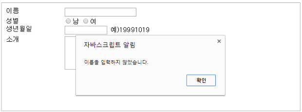 alert("이름을 입력하지 않았습니다.");
