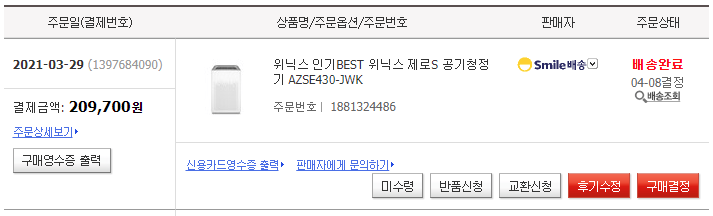 며칠 전부터 어머니가 목에 이물감이 있어서 계속 기침을 하는데 약을 먹어도 호전되지 않아 원인을 찾아보던 중에 아마도 미세먼지가 원인이지 않을까 싶어서 처음으로 공기청정기를 샀습니다. 시골도 공기청정기가 필요하게 됐습니다.
