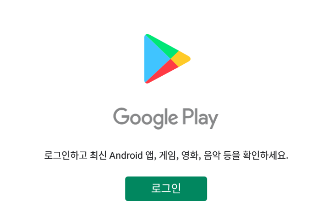 구글 플레이를 첫 실행하면 구글 로그인 화면이 뜹니다. 안드로이드 처음 사용했을 때 환경과 똑같기 때문에 구글 플레이를 실행하기 위해서는 구글 계정으로 로그인 해야 합니다. 스마트폰에서처럼 처음 한번만 하면 됩니다.
