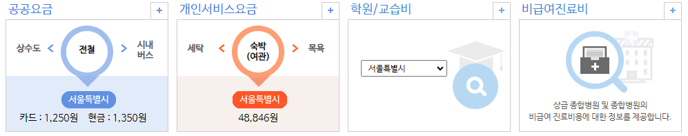 일부지역은 제외되지만 지역마다 공공요금과 학원비, 병원 진료비 등도 조회가 가능합니다. 매달 생필품 가격을 엑셀 파일로도 제공하니 통계자료나 업무 등에도 활용 할 수 있습니다.