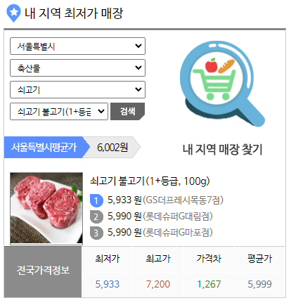 특히 생활물가 중에서도 우리가 당장 먹는 건 어쩔 수 없이 소비를 해야하는데요, 내가 사는 지역의 평균 물가나 매일 달라지는 제품 가격을 미리 확인하고 조금 더 알뜰한 장보기를 하면 좋을 거 같습니다.
