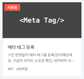 HTML 태그 방식은 네이버에서 제공하는 메타 코드를 스킨 편집 페이지에서 추가하는 방식입니다.