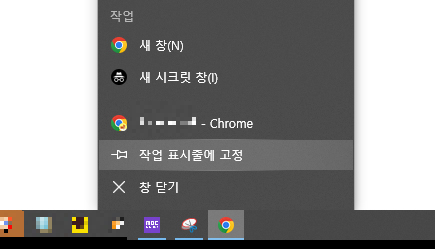 크롬 브로우저 하나에서 하나의 계정만 사용하고 싶을 때는 "이미지 15"에서 처럼 여러 개의 계정 중 내 PC에서 사용 할 계정을 선택합니다. 그리고 "이미지 14"처럼 로그인 한 계정의 크롬을 작업 표시줄에 고정합니다.
