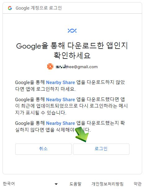 해킹 방지를 위해 다른 경로를 통해 프로그램을 설치했다면 로그인하지 말라는 경고문입니다. 안드로이드 페이지에서 설치했다면 안심하고 "로그인"합니다.