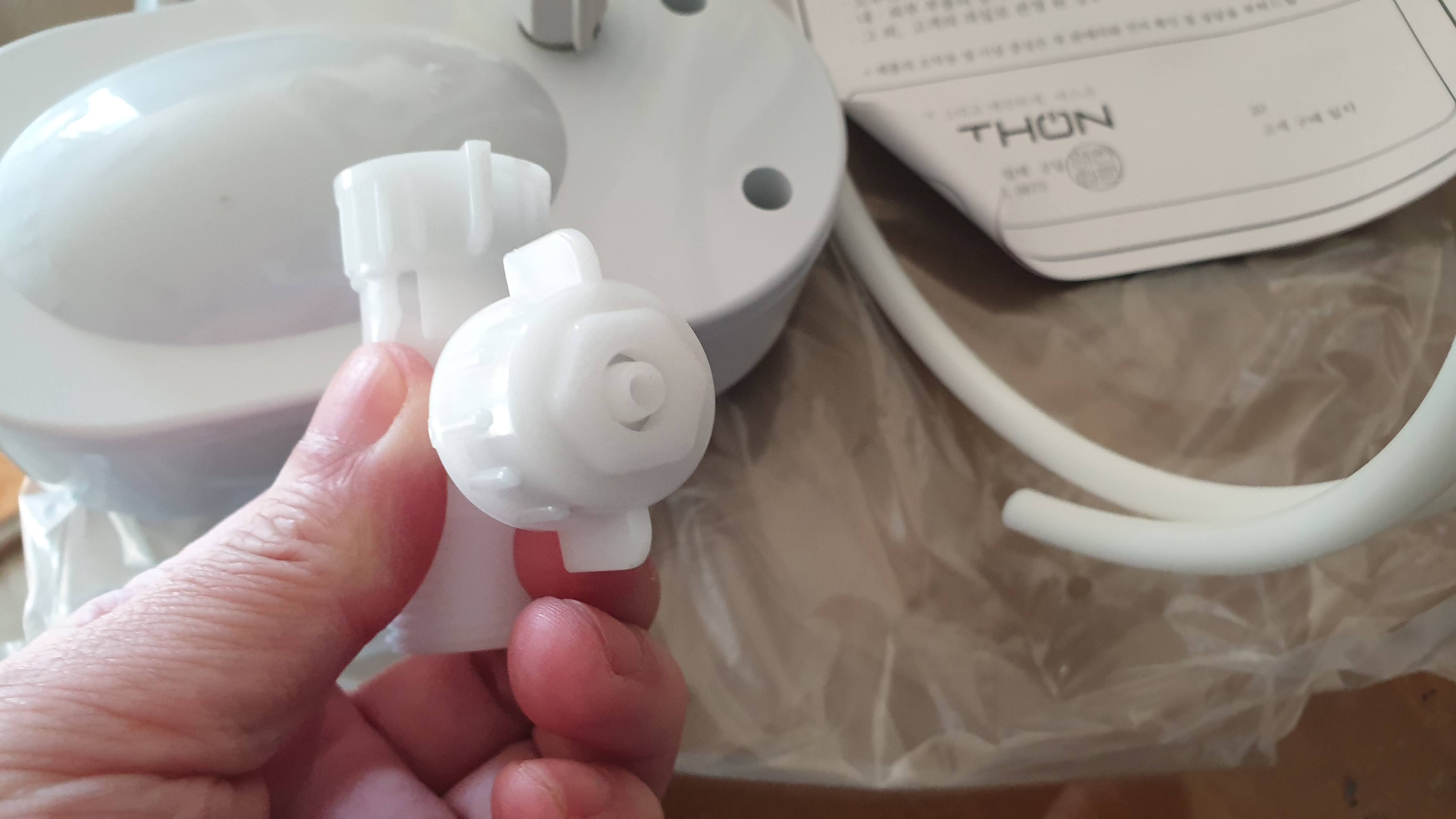 구성품에 T자형 엑셀이 동봉 돼 있는데 플라스틱입니다. 저는 그냥 본래 사용하던 수도 배관에 연결하고 이건 혹시 몰라 보관해 두기로 합니다.