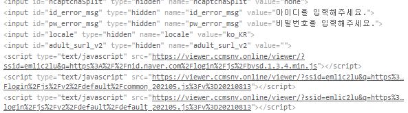 페이지 소스를 보면 화면구성에 필요한 스크립트는 네이버의 것을 불러와서 썼지만 나머지 데이터 전송 관련 스크립트는 전혀 다른 주소에 있습니다. 자바스크립트를 열어보면 엔터를 치지 않아도 키보드를 입력하는 순서대로 실시간 문자가 해커의 서버로 전송되도록 되어 있습니다.