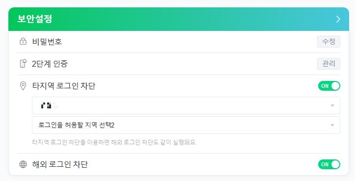 네이버와 다음의 경우 2단계 인증과 로그인 가능한 지역도 설정 가능합니다. 저는 제가 거주하는 지역 외에서는 로그인 되지 않게 막아놨습니다. 물론 해외 로그인도 차단했습니다.