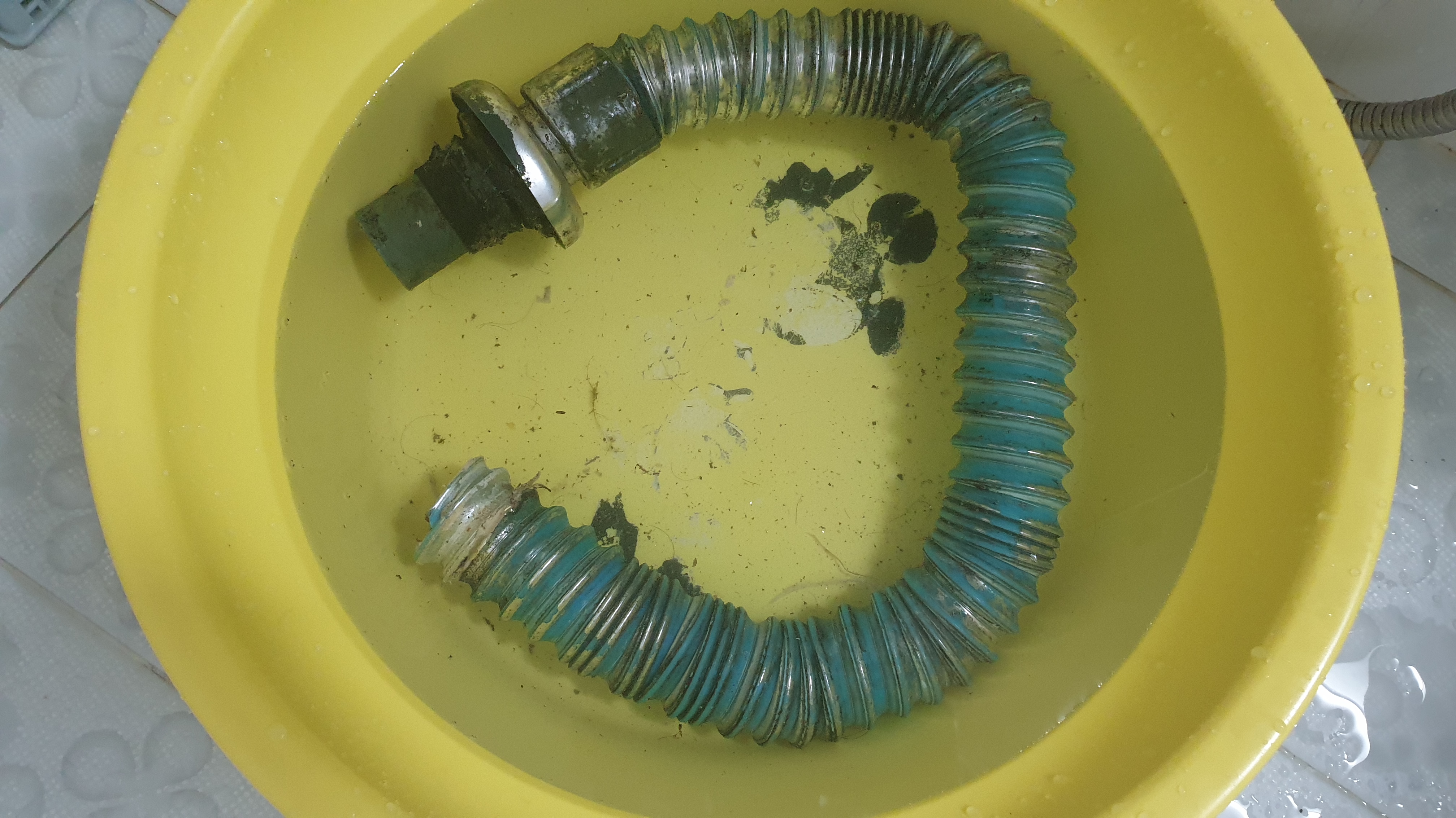 주름관은 구입하지 못해서 기존에 사용하던 걸 락스물에 담갔다가 깨끗하게 닦아 재활용하기로 했습니다.