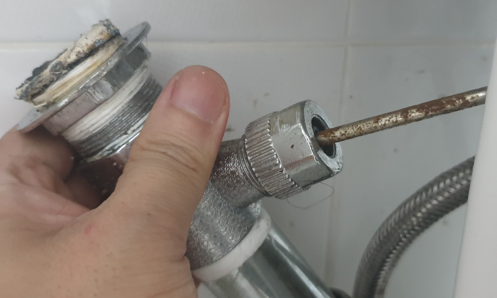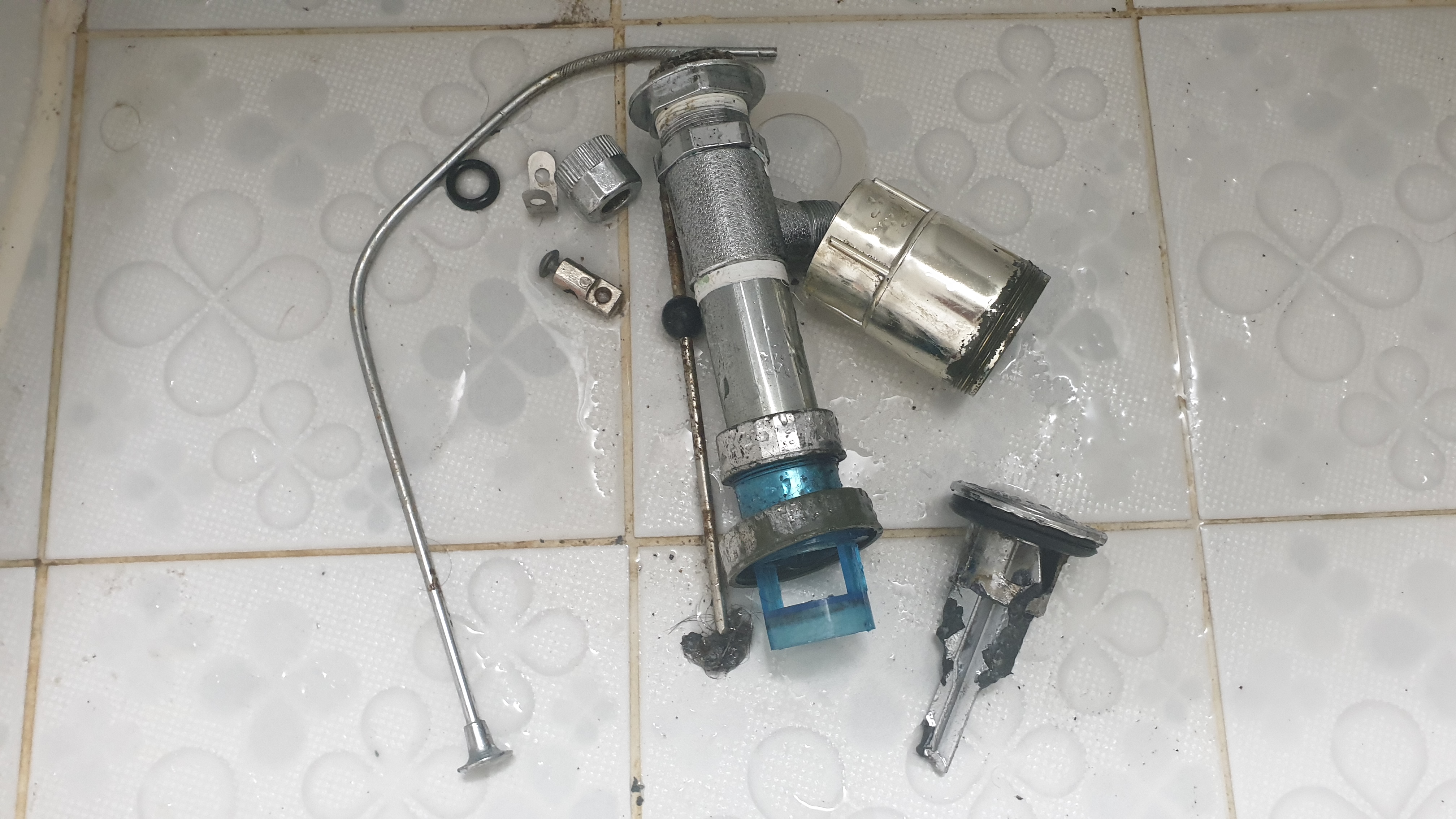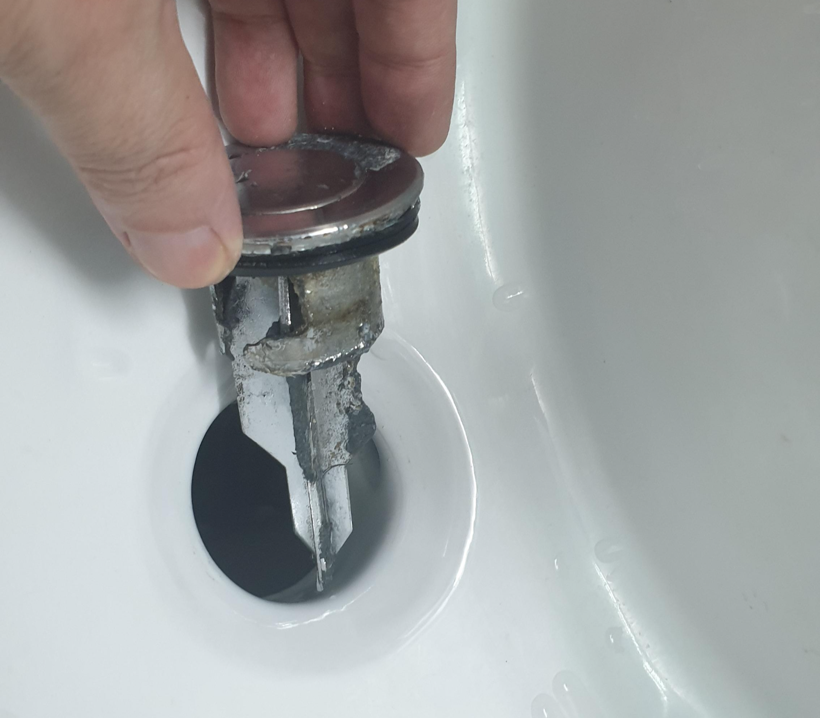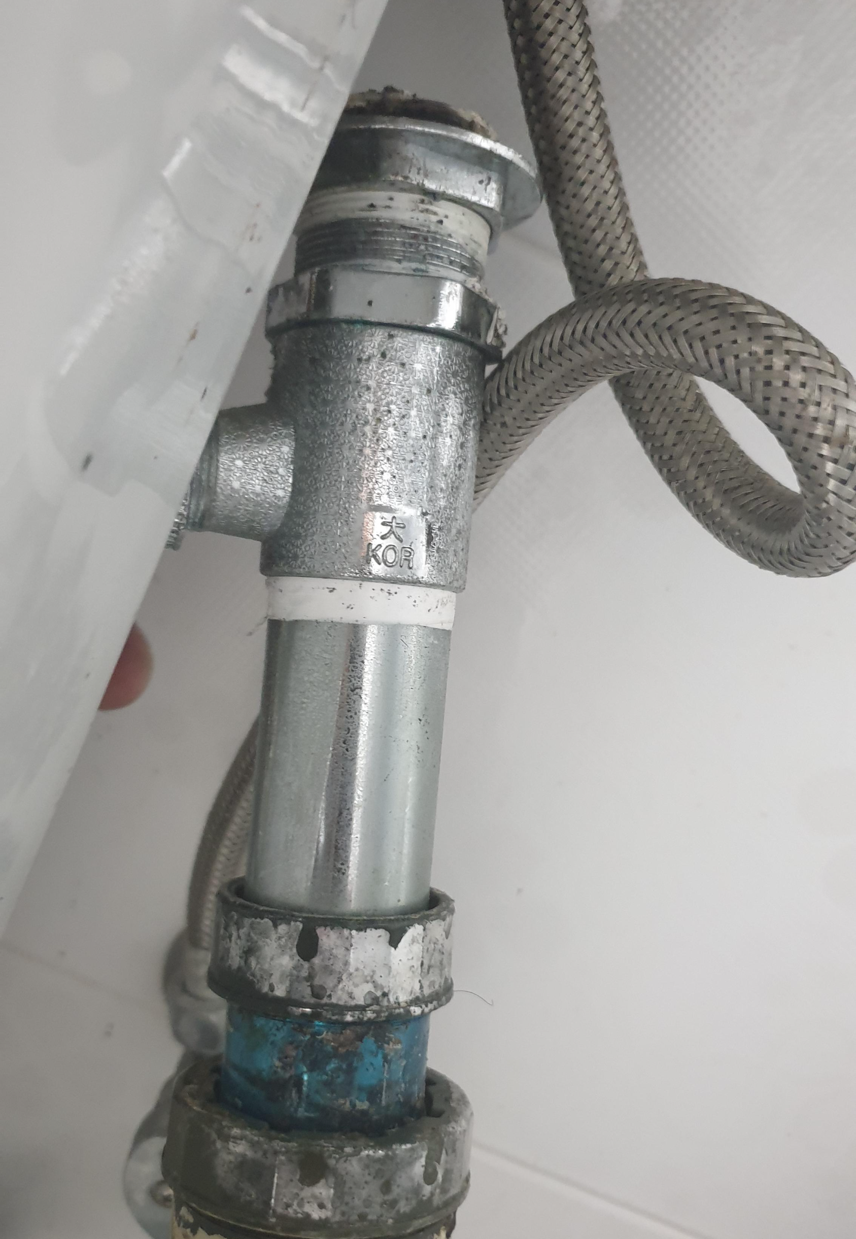 도금한 것도 다 벗겨지고 고무배킹도 다 삭았습니다. 무엇보다 세면대 위, 아래를 이어주는 부분이 완전히 부러졌습니다. 그대로 사용하는 건 어려웠습니다.