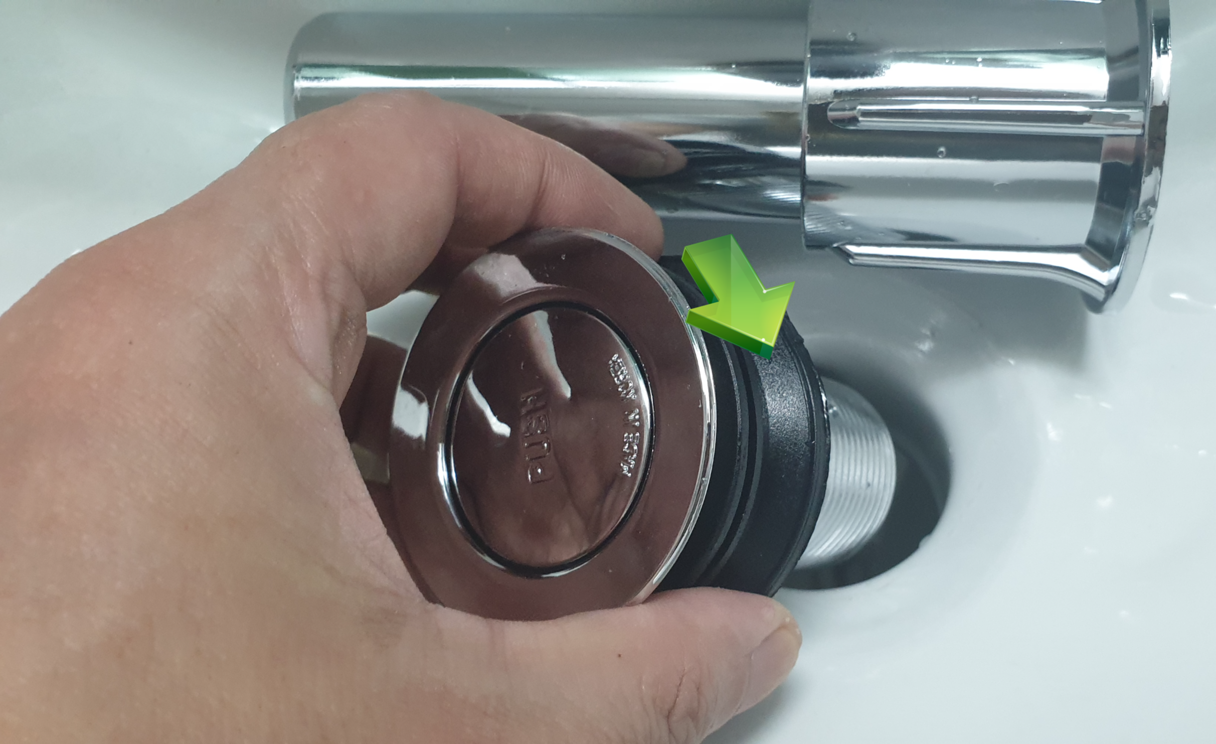 사진은 조립하기 전에 찍은 거라 큰 고무패킹이 같이 붙어있는데 녹색 화살표 큰 패킹이 세면대 아래로 가야 합니다.
