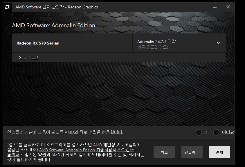 AMD의 정보 수집 허용을 선택 한 수 "설치" 버튼을 클릭합니다.