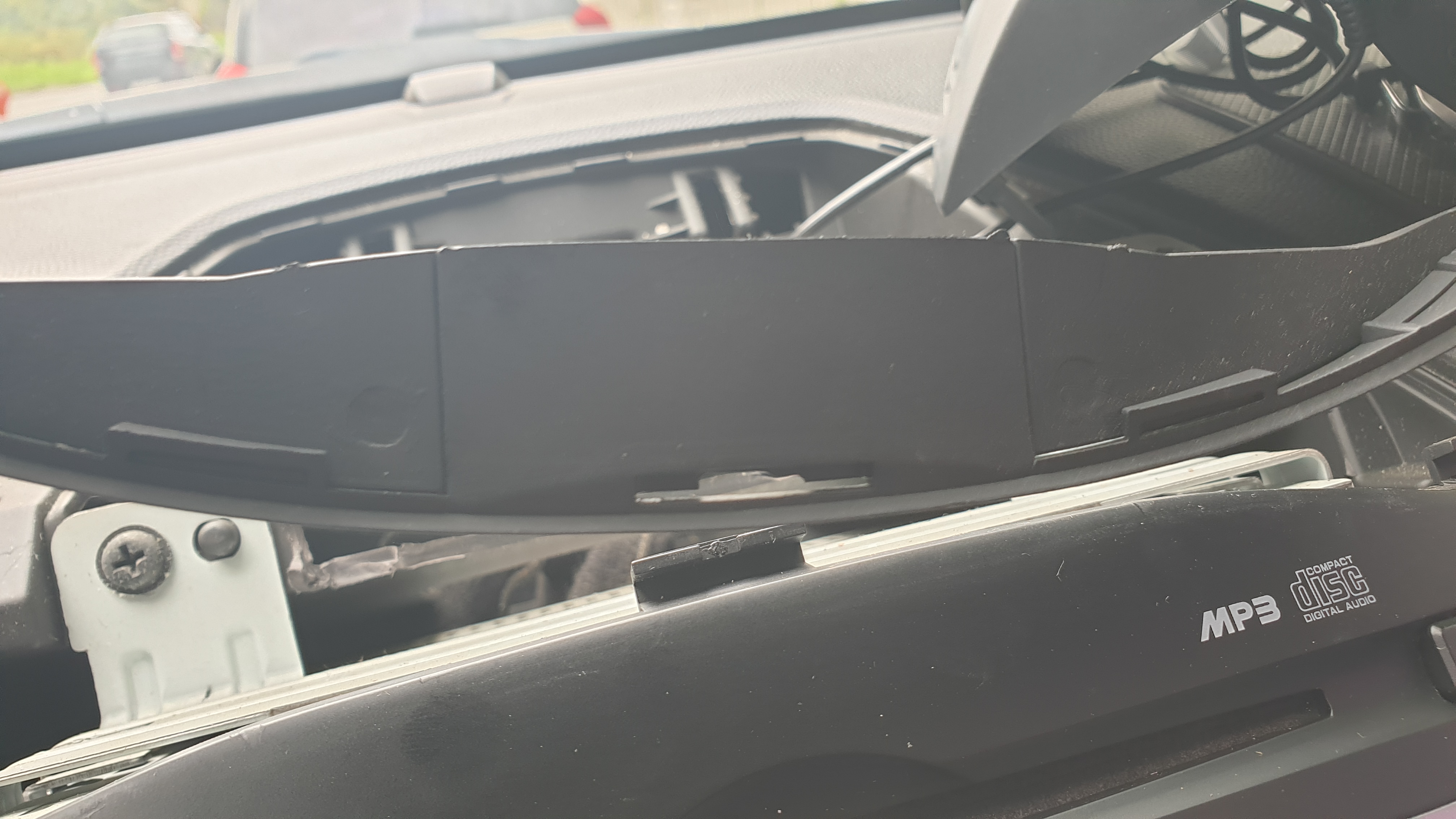 바깥쪽 마감재는 뒤쪽부터 끼워놓고 앞쪽엔 이렇게 안쪽에 고리가 세 개 있기 때문에 앞으로 살짝 당기면서 끼우면 됩니다. 만약 내비게이션을 처음 설치 할 때는 위에 첫 번째 사진처럼 기존 덮개를 분리 할 때 이런 모양을 감안해서 헤라를 이용해서 탈거하면 됩니다.