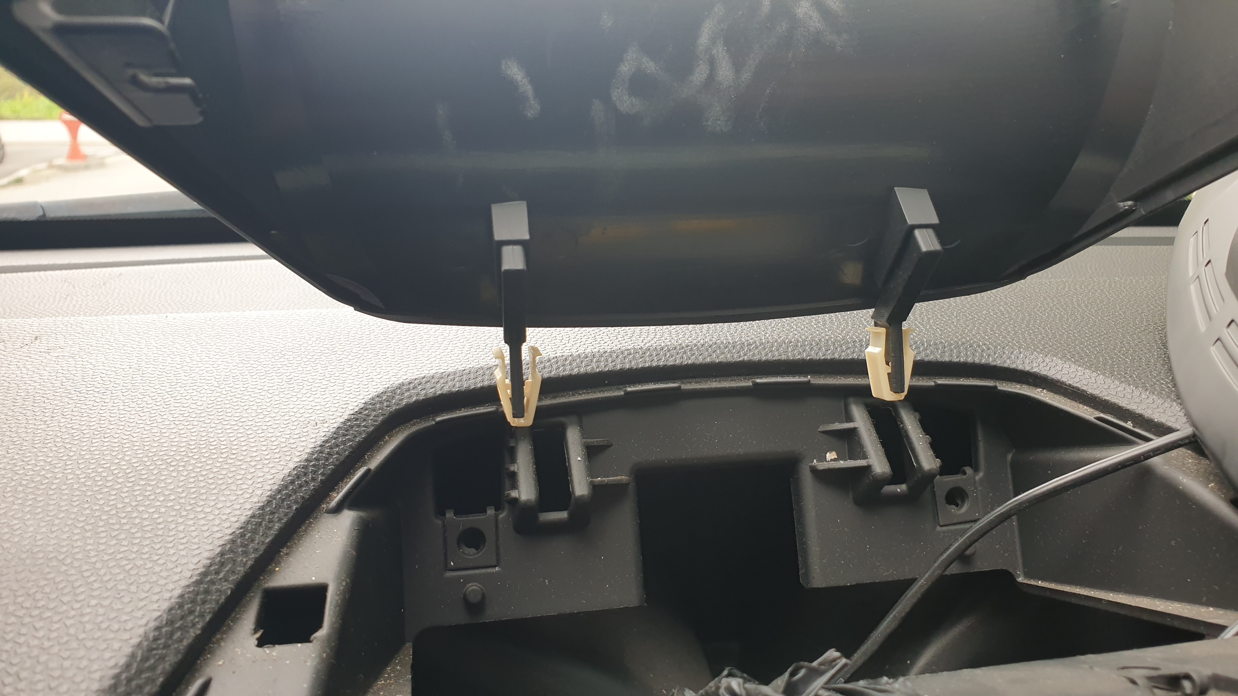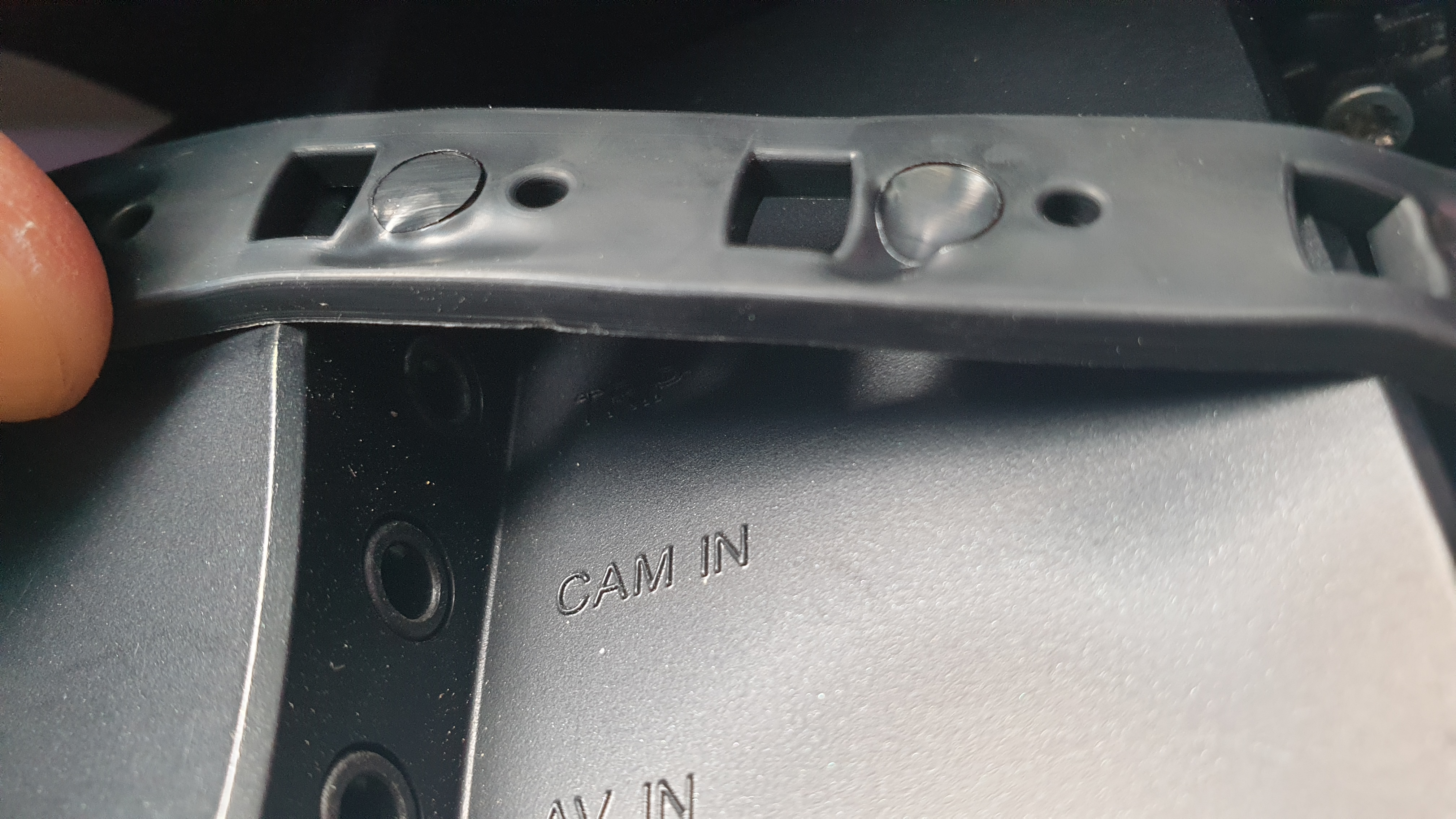 윗쪽 내비게이션 거치대인데 뒤쪽에 이렇게 고리가 있는데 보이는 것처럼 약해 보여서 부러질까봐 애먹었습니다.