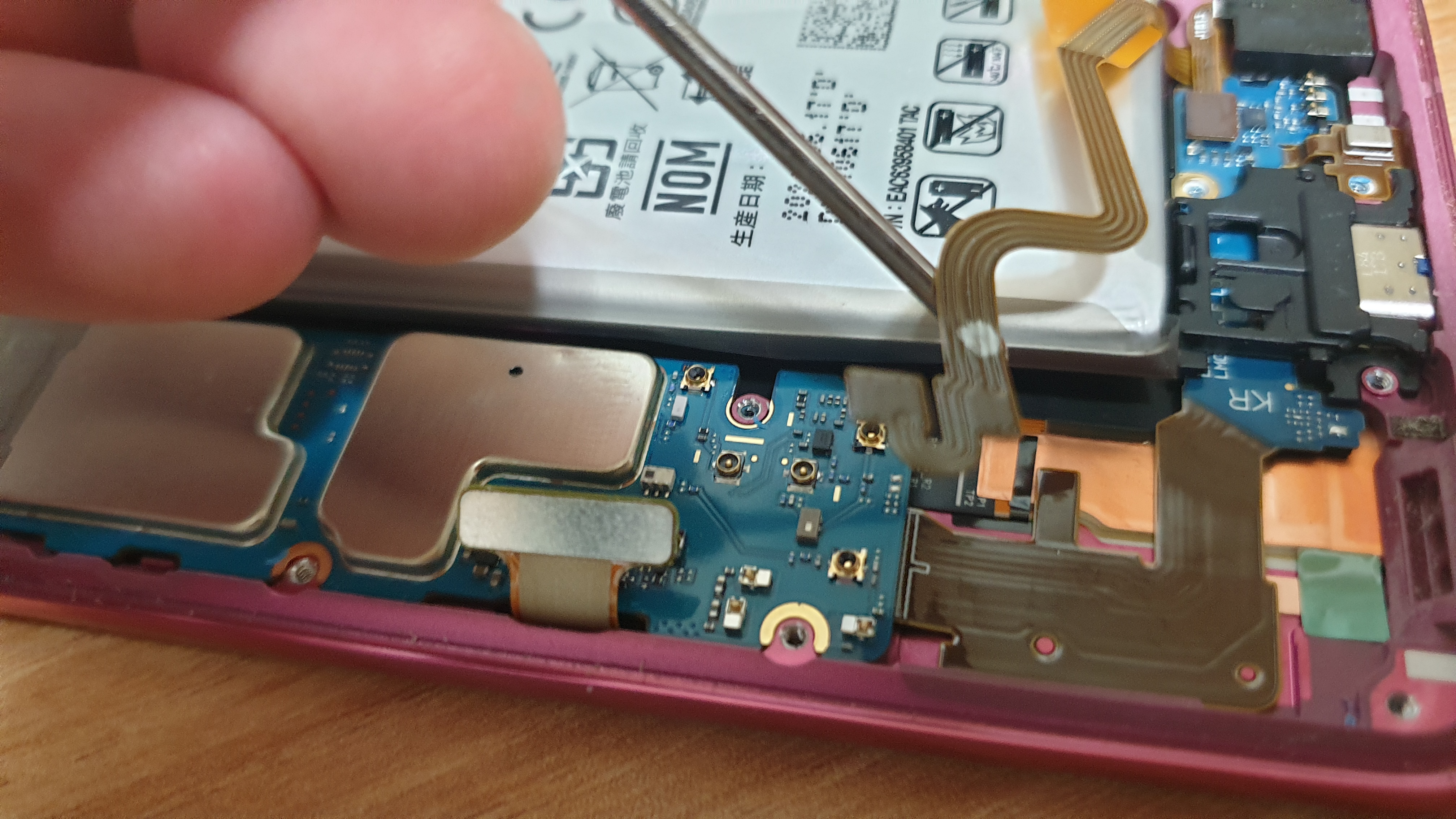 배터리와 PCB 기판과 연결 된 배선을 분리합니다.