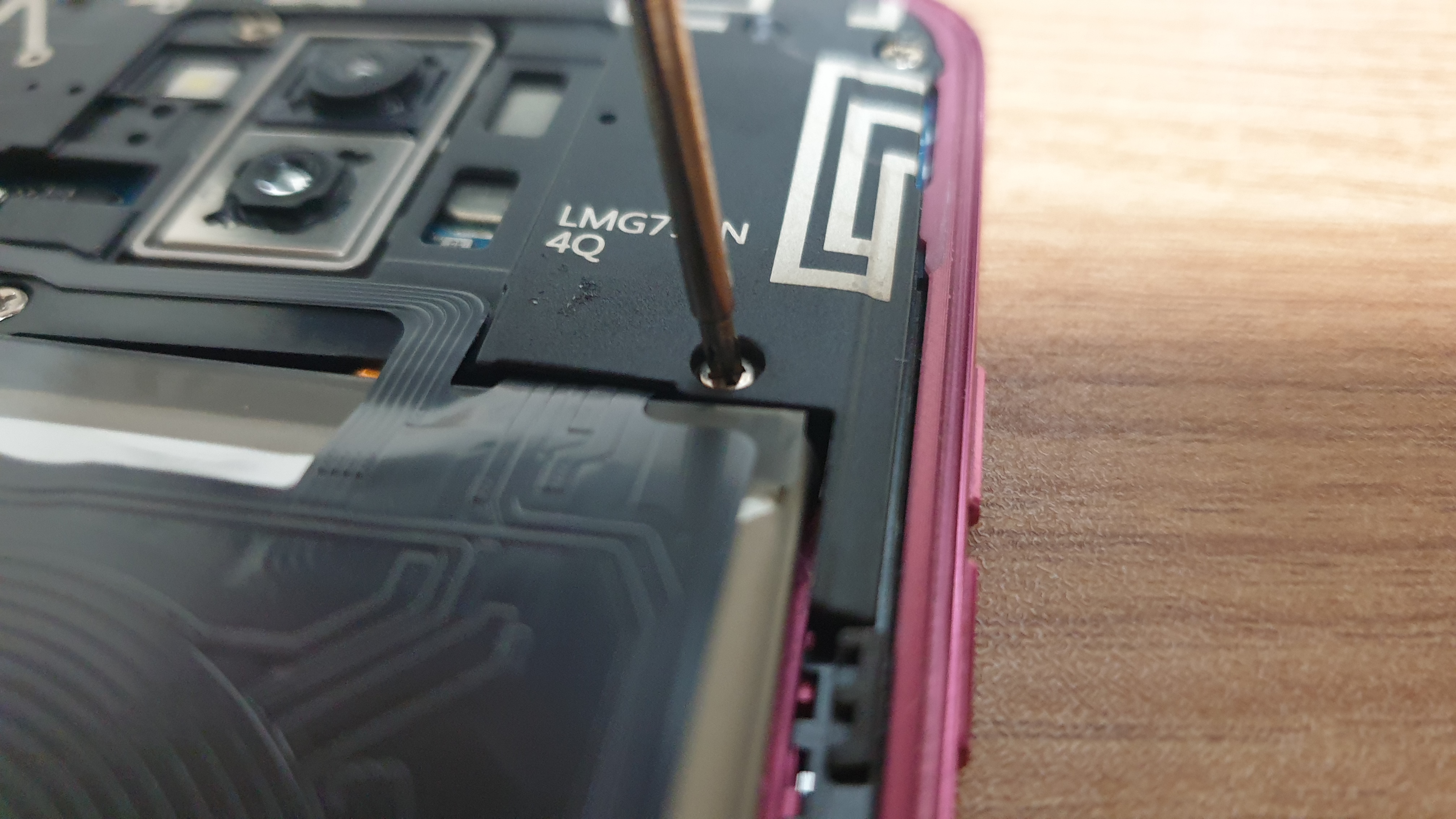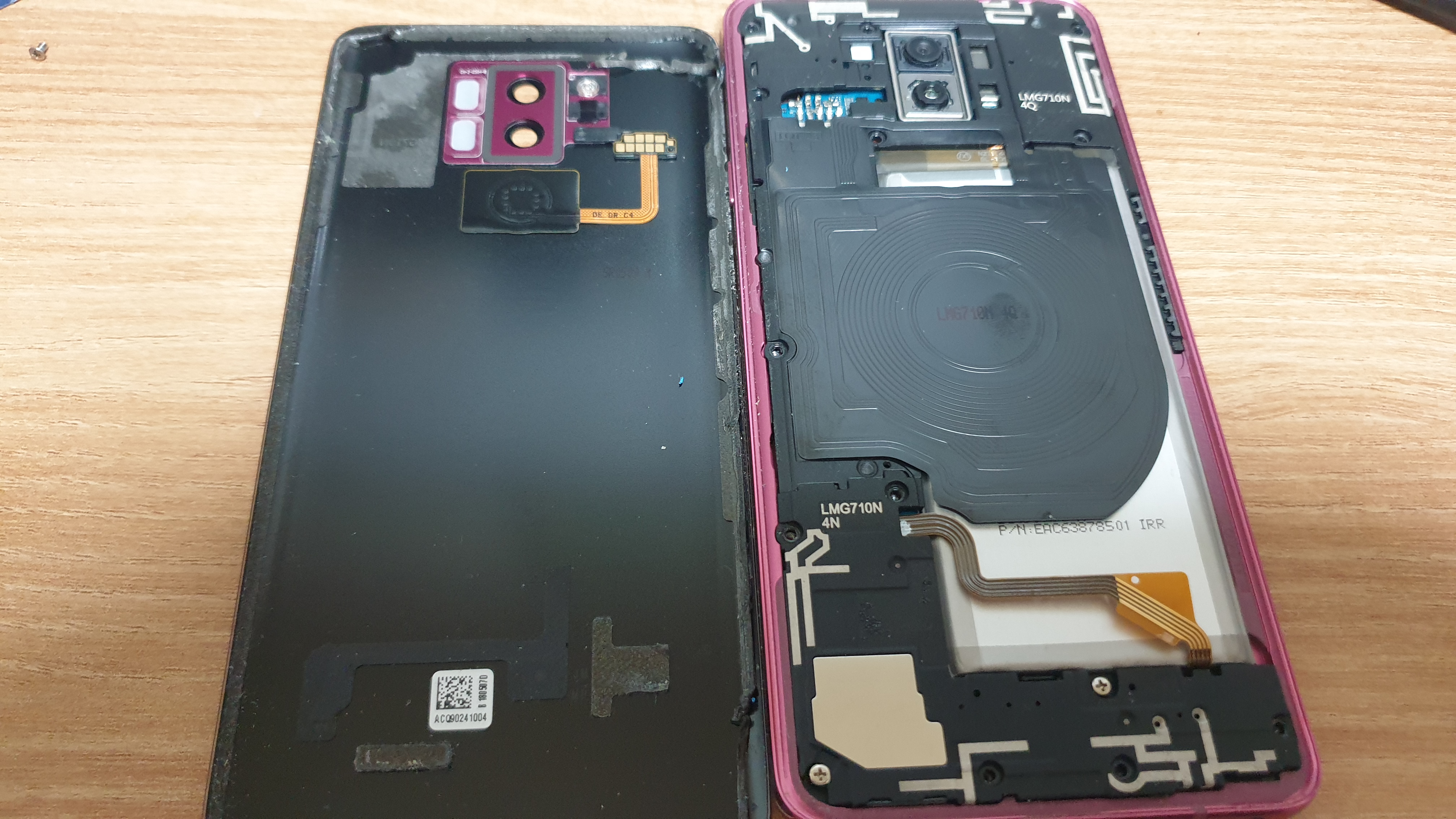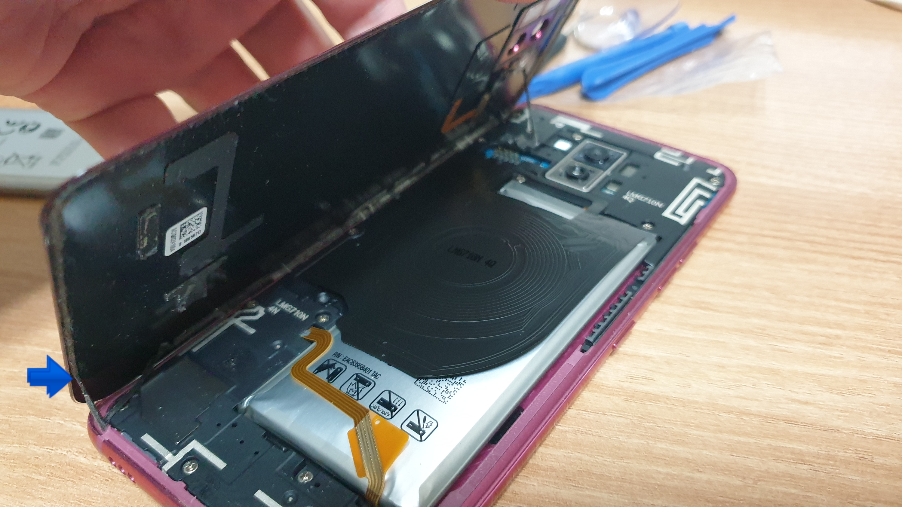 어느정도 됐을 때 살짝 들춰보니 무선 충전 패드와 부풀어 오른 배터리가 보입니다.
