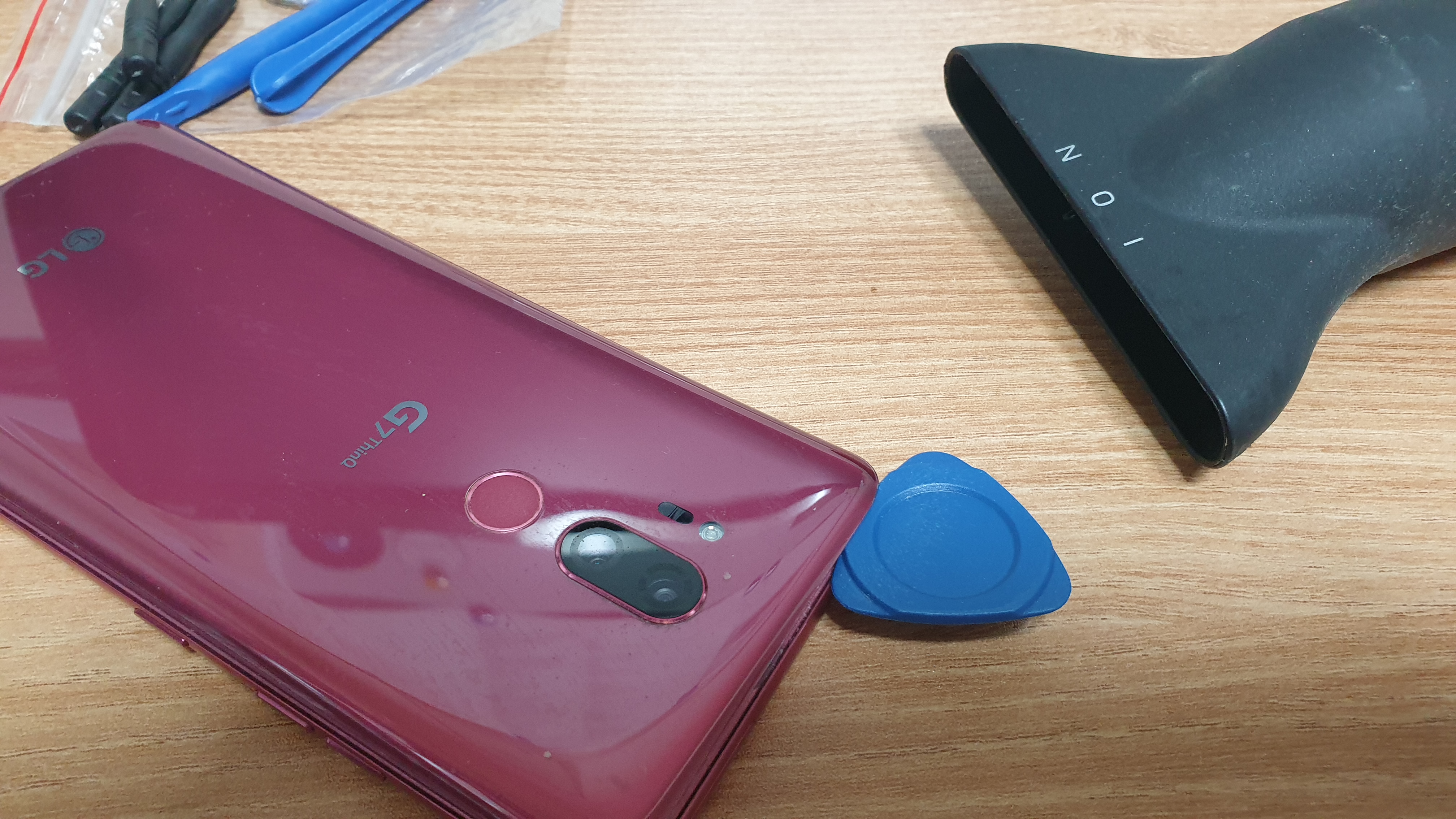 작은 드라이버 세트와 스마트폰 뒷면을 열을 수 있는 해라와 기타 피크 같은 것이 있습니다. 저는 배터리가 부풀면서 뒤면 덮게가 살짝 들려서 있어 여는데는 그리 어렵지 않았습니다.